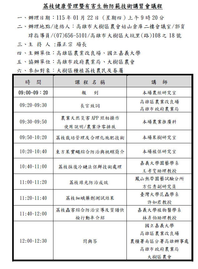 荔枝健康管理暨有害生物防範技術講習會-大樹