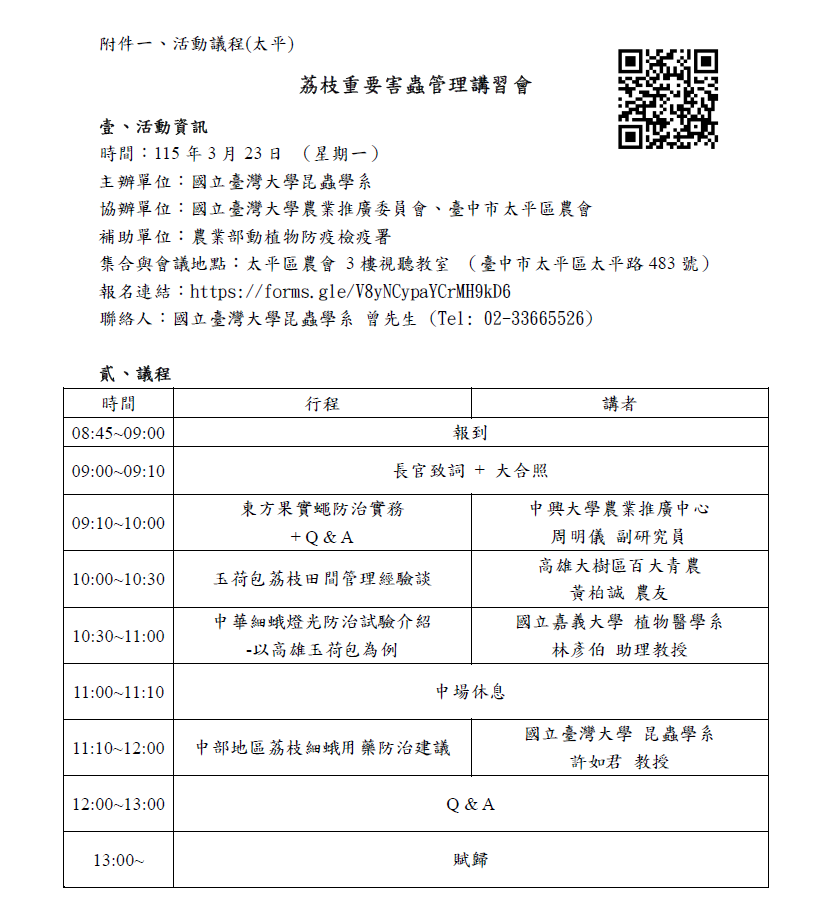 荔枝重要害蟲管理講習會