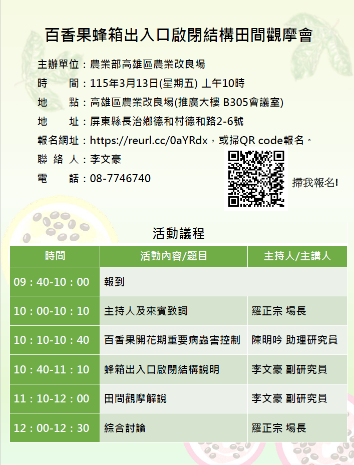 高雄區農業改良場(推廣大樓B305會議室)
