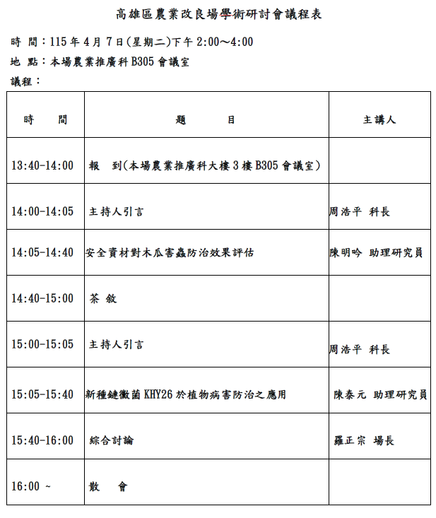 高雄區農業改良場農業推廣科 B305 會議室